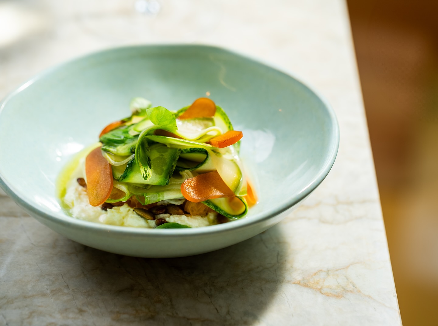 Embora mude regularmente, o cardápio preserva a essência da casa: criatividade, leveza e técnica.